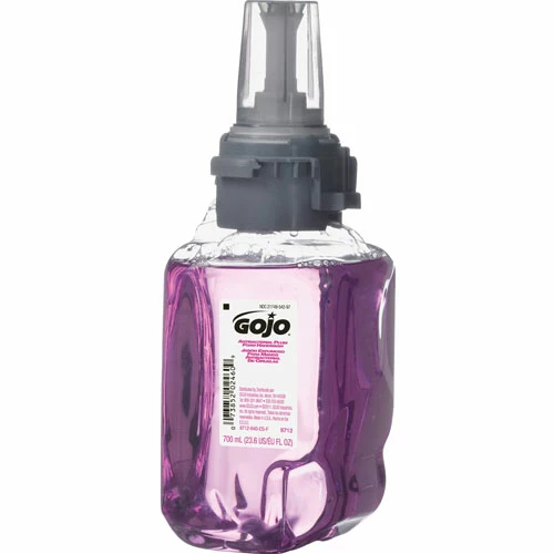 High-performance, antibacterial hand soap offers luxurious lather, an appealing plum fragrance and attractive purple color. The refill fits the GOJO ADX-7 Dispensers. USDA certified bio-based formulation is enriched with a moisturizer, natural extract and skin conditioner. Sanitary Sealed refill helps lock out germs. Durable, recyclable PET bottle uses 30 percent less material than standard, rigid HDPE. Patent-pending, Controlled Collapse technology keeps bottle shape longer while emptying. Crystal clarity provides visual appeal and easier monitoring of fill level. Each refill includes a fresh dispensing valve. The removable pump promotes easier recycling.
