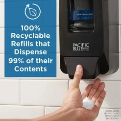 Pacific Blue Ultra™ Gentle Foam Soap can help earn LEED® credits, too. Packaged in 100% recyclable bottles that contain 25% post-consumer content, this foaming hand soap refill is also USDA BioPreferred and meets Green Seal™ Standard GS-41A, based on effective performance and protective limits on VOCs and human and environmental toxicity (see GreenSeal.org). The bottles are designed to dispense 99% of the soap before replacement is needed, helping reduce waste and minimize the need for refilling.