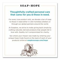 SOAP = HOPE. Change the world — choose a soap that matters. With each purchase, a bar of soap is provided to someone in need either locally or abroad. Made with thoughtfully selected, naturally derived ingredients and offer unique, soothing aromas to calm your body and mind. Removing daily grime from your hands is a must for hand soap, but that shouldn’t mean stripping away moisture. Infused with hydrating shea butter and aloe vera that will leave your hard-working hands feeling clean and nourished with every wash. Vegan soap is cruelty-free, gluten-free and free of harsh chemicals and parabens.