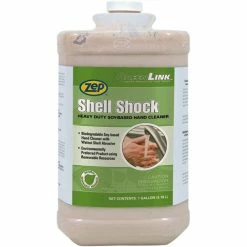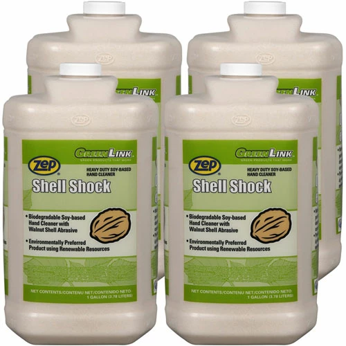 Shell Shock is a heavy-duty, industrial hand cleaner that uses the natural cleaning power of soy solvents and abrasive walnut shells to clean the tough grime and grease. It removes stubborn soils such as grease, tar, resins, paints, adhesives, carbon, asphalt and inks. Enriched with skin-softening ingredients to keep the hands from drying, it will leave hands soft. Shell Shock is an environmentally conscious choice that uses the renewable resources of soy-based solvents and walnut shells. It is free of petroleum solvents, fortified with natural solvents and not harmful to the environment. Shell Shock is also part of the Zep GreenLink line of Environmentally Preferred Products (EPP). Scent is Spiced Apple.